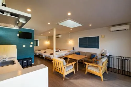Weitere Informationen zu 南房総 貸切コテージ セントシュバインDas Familienzimmer im H&H Calme bietet eine geräumige Unterkunft mit direkter Nähe zum Strand und ist ideal für Reisende mit Kindern oder Gruppen. Der kostenlose Parkplatz erleichtert die Anreise, während das freie WLAN den Zugang zu digitalen Diensten ermöglicht.